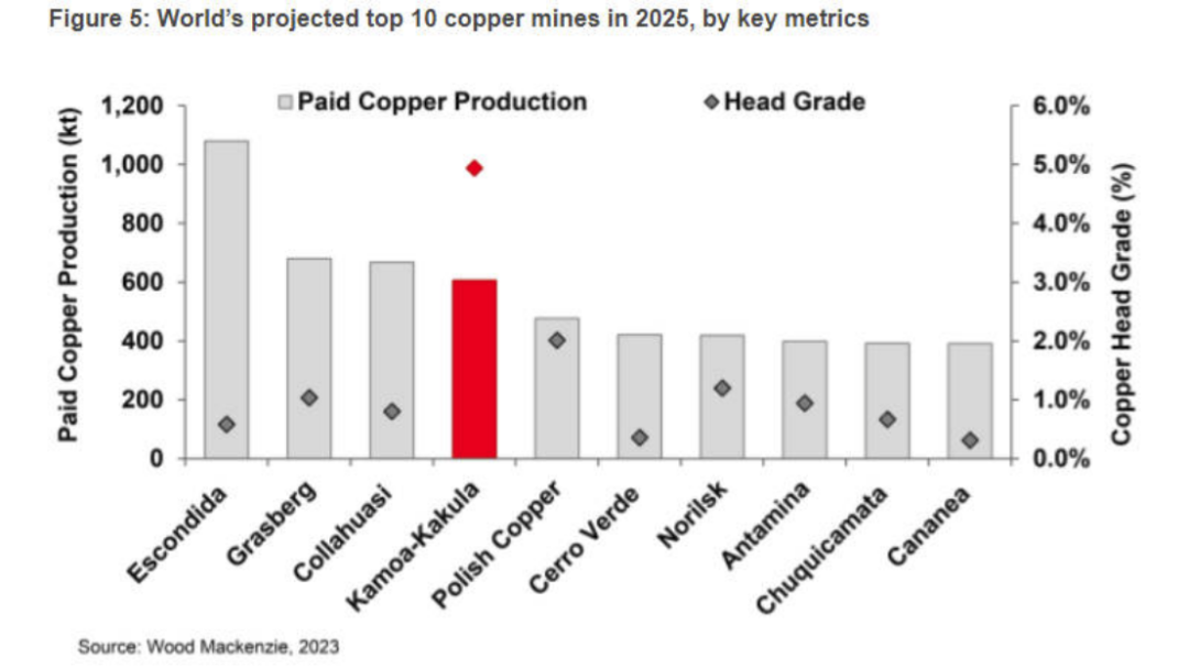 紫金礦業(yè)的卡莫阿 -卡庫拉銅礦以及科盧韋齊銅(鈷)礦,均位于剛果(金)的盧阿拉巴省,2024年卡莫阿-卡庫拉的銅精礦年產(chǎn)量月42.5-45萬噸,當(dāng)?shù)V山三期擴建完成后,未來10年平均產(chǎn)量將提升至約62萬噸/年,使卡莫阿銅礦成為全球第4大銅礦山、非洲大陸最大銅礦。